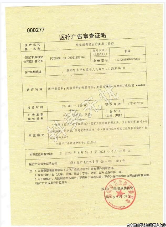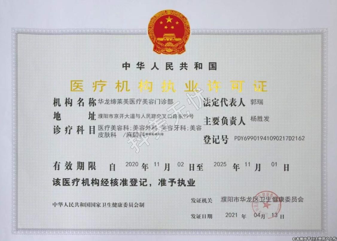 發(fā)證機關(guān):濮陽市龍華區(qū)衛(wèi)生健康委員會