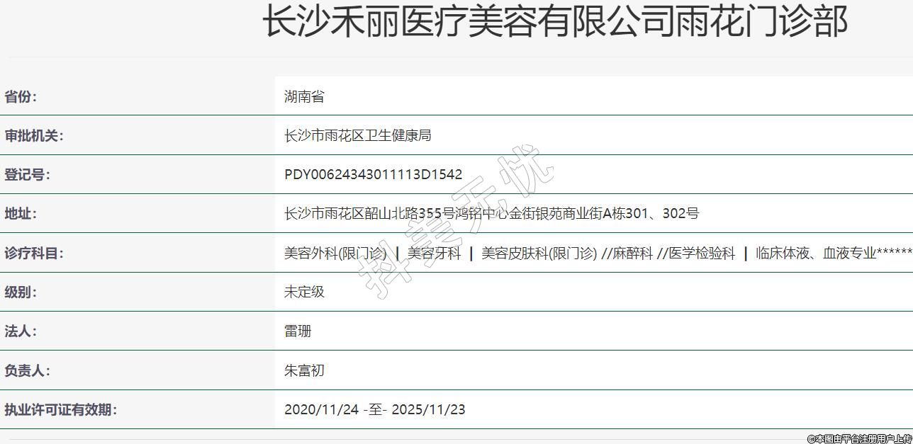 長沙禾麗醫(yī)療美容有限公司雨花門診部