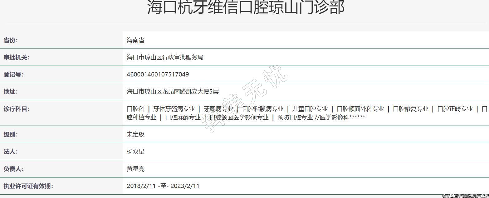 海口杭牙維信口腔瓊山門(mén)診部
