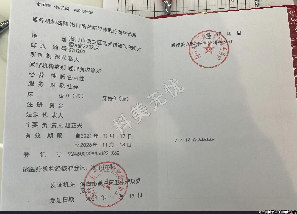醫(yī)療機(jī)構(gòu)名稱:??诿捞m斯妃雅醫(yī)療美容診所