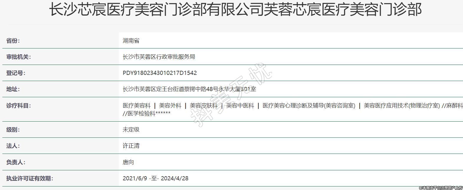 長沙芯宸醫(yī)療美容門診部有限公司芙蓉芯宸醫(yī)療美容門診部