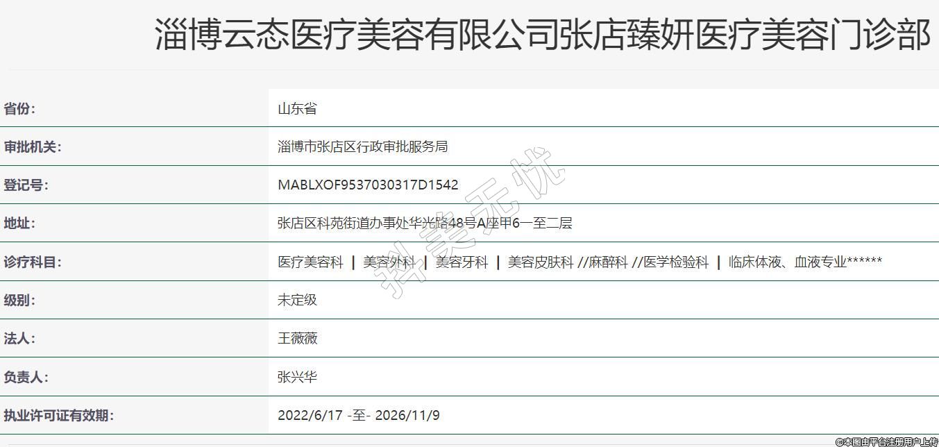 淄博云態(tài)醫(yī)療美容有限公司張店臻妍醫(yī)療美容門(mén)診部