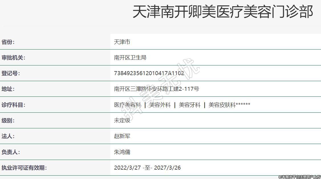 天津卿美醫(yī)療美容2014年12月24日成立,地址:南開區(qū)三潭路懷安環(huán)路工建2-117號,診療科目:醫(yī)療美容科 | 美容外科 | 美容牙科 | 美容皮膚科******
