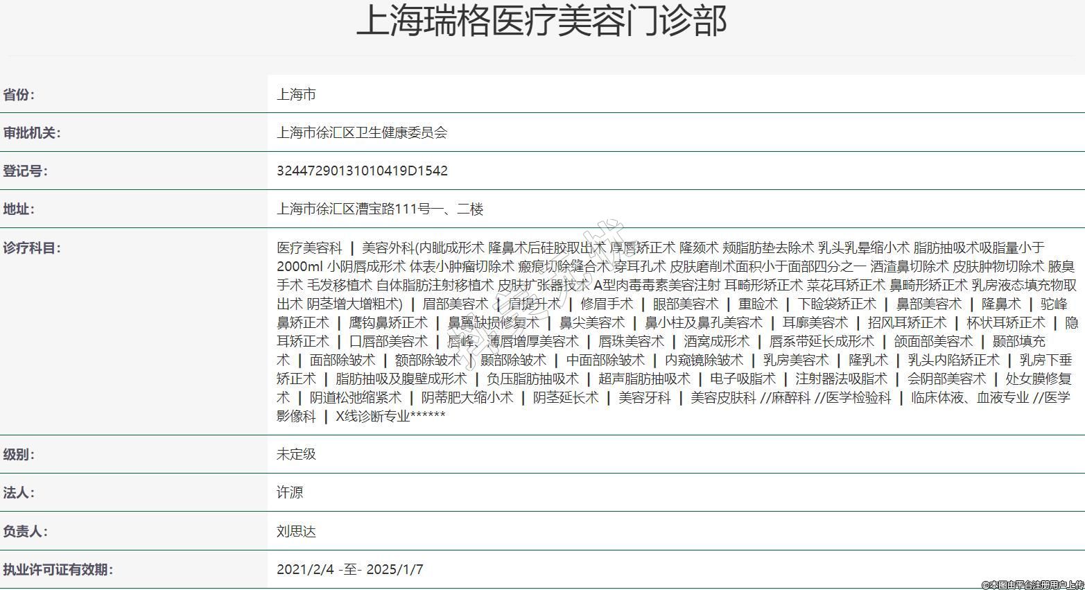 上海瑞格醫(yī)療美容門診部