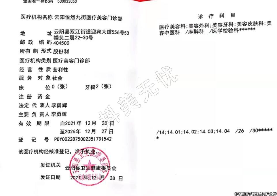 醫(yī)療機(jī)構(gòu)名稱:云陽(yáng)悅?cè)痪沤轴t(yī)療美容門診部