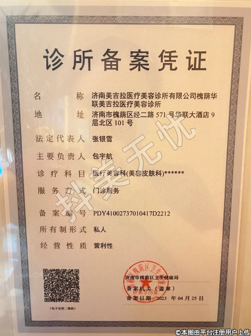 名稱:濟(jì)南美吉拉醫(yī)療美容診所有限公司槐蔭華聯(lián)美吉拉醫(yī)療美容診所
