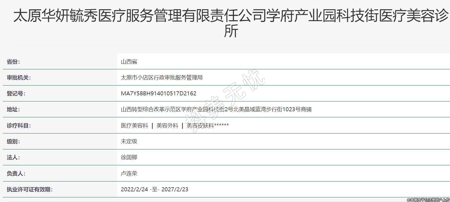 太原華妍毓秀醫(yī)療服務(wù)管理有限責(zé)任公司學(xué)府產(chǎn)業(yè)園科技街醫(yī)療美容診所