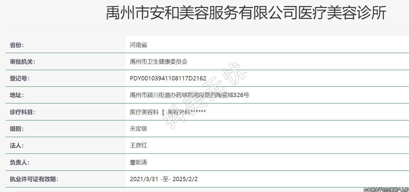禹州市安和美容服務(wù)有限公司醫(yī)療美容診所