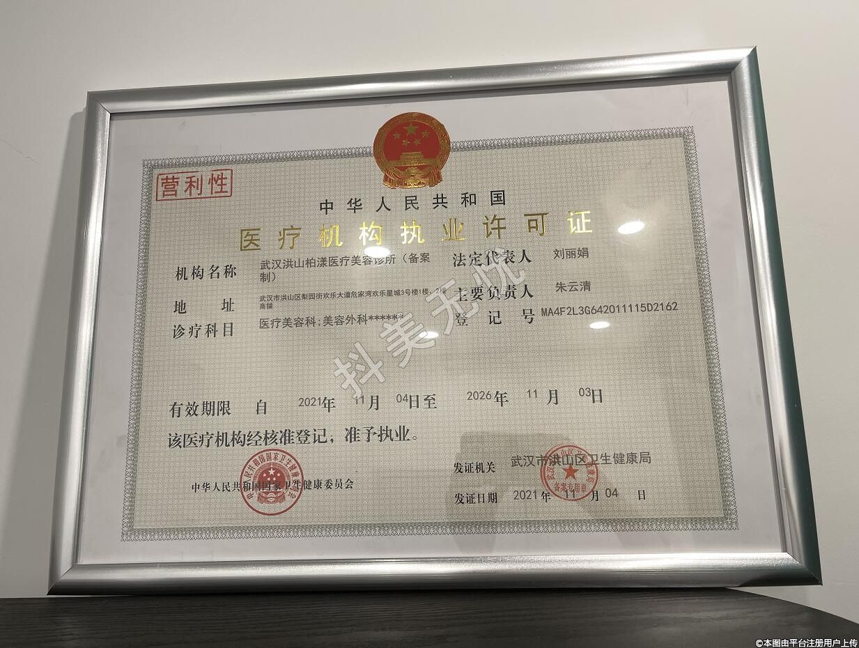 機構(gòu)名稱:武漢洪山柏漾醫(yī)療美容餓所(備案制)