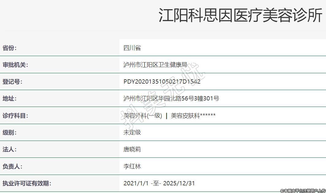 江陽(yáng)科思因醫(yī)療美容診所成立于2019-11-28,位于四川省瀘州市江陽(yáng)區(qū)華園北路56號(hào)3幢301號(hào)??剖曳秶?美容外科(一級(jí))美容皮膚科。