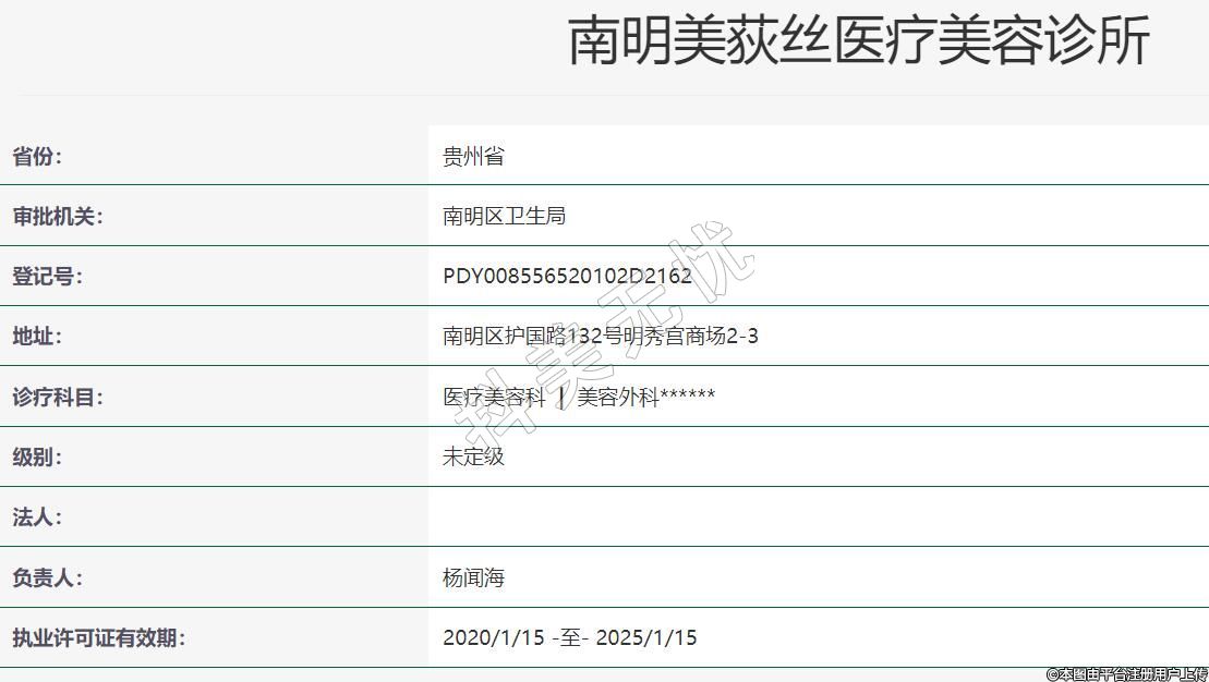 貴陽美荻絲醫(yī)療美容地址:南明區(qū)護(hù)國路132號明秀宮商場2-3,診療科目:醫(yī)療美容科 | 美容外科******