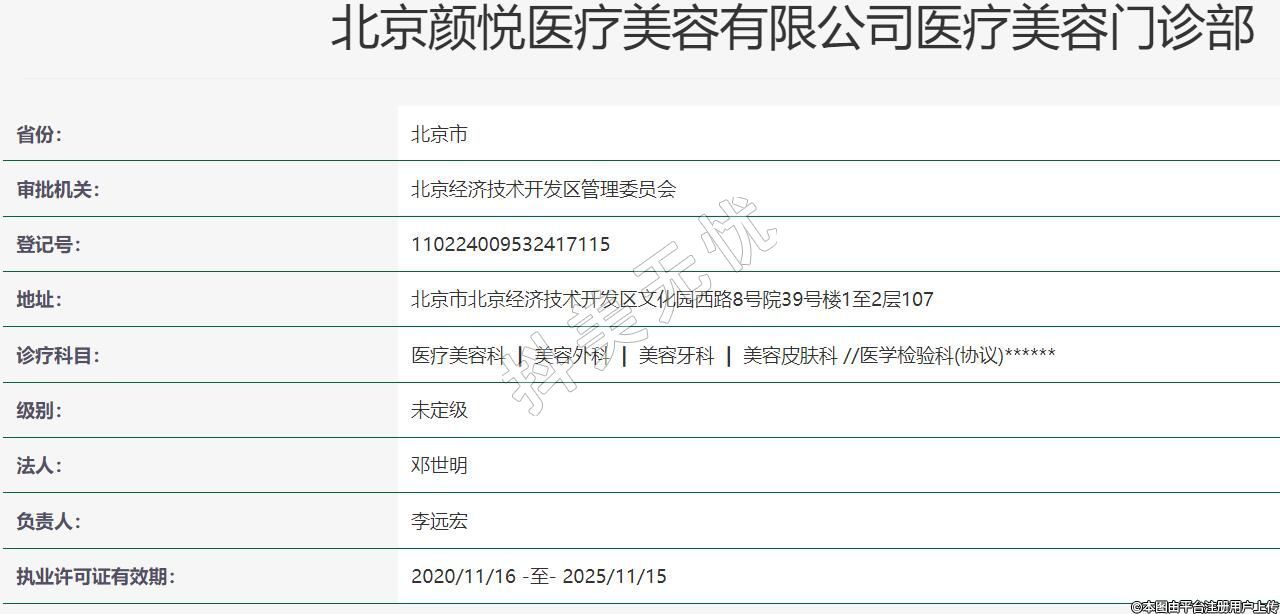 北京顏悅醫(yī)療美容有限公司醫(yī)療美容門診部