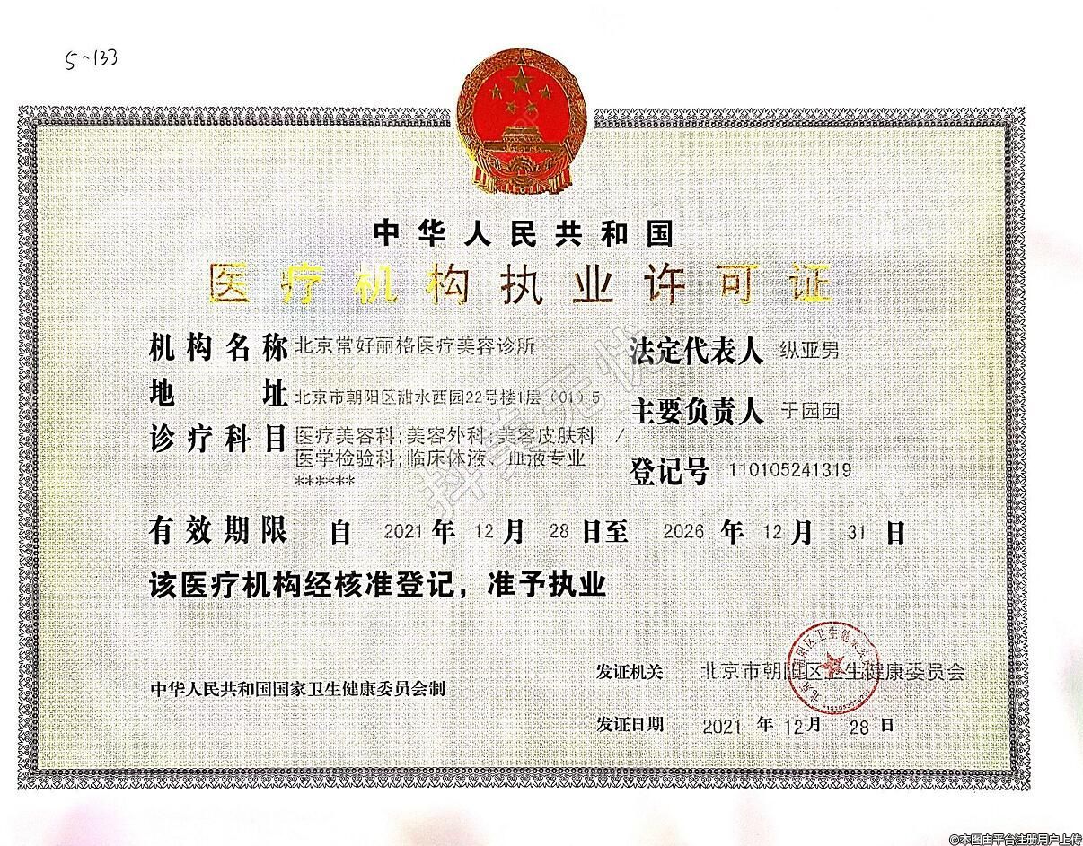發(fā)證機關:北京市朝陽區(qū)衛(wèi)生健康委員會