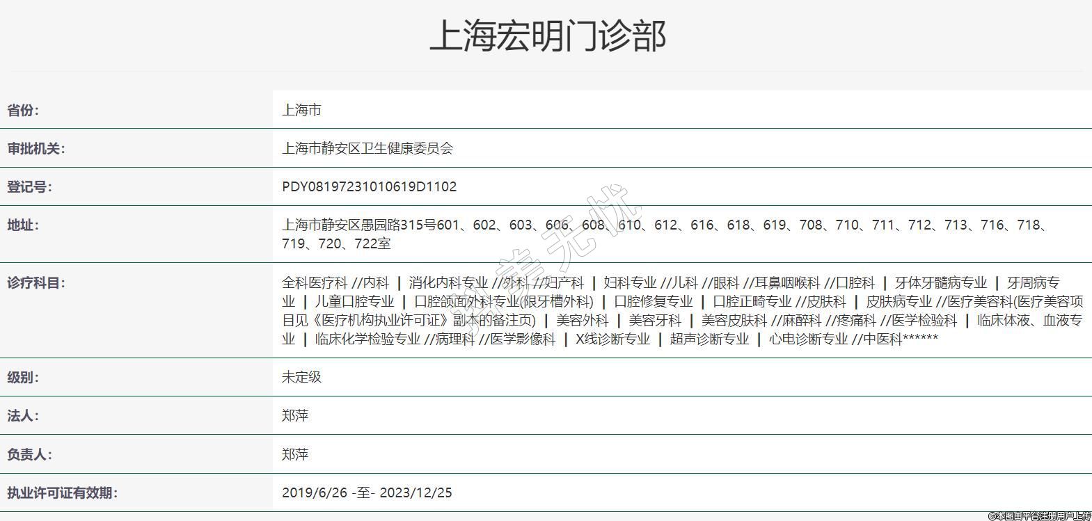 執(zhí)業(yè)許可證有效期:2019/6/26 -至- 2023/12/25