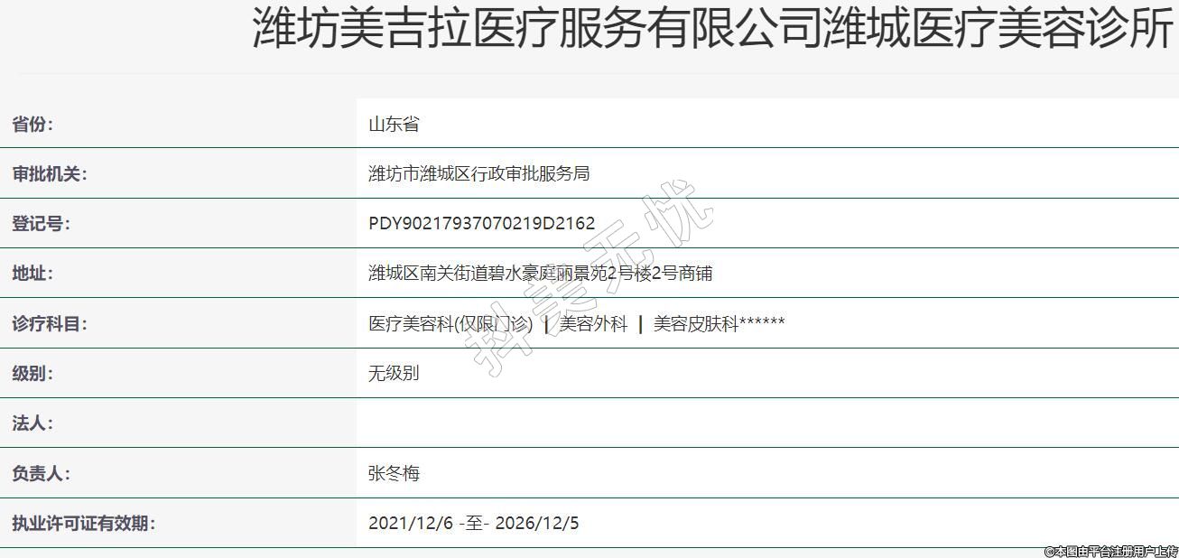 濰坊美吉拉醫(yī)療服務(wù)有限公司濰城醫(yī)療美容診所