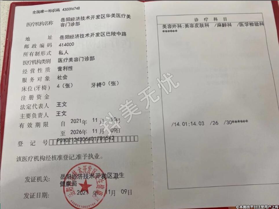 醫(yī)療機構名稱:岳陽經(jīng)濟技術開發(fā)區(qū)華美醫(yī)療美容門診部
