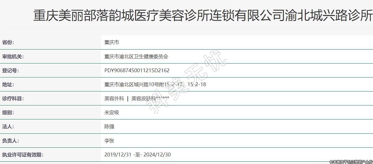 重慶美麗部落韻城醫(yī)療美容診所連鎖有限公司渝北城興路診所