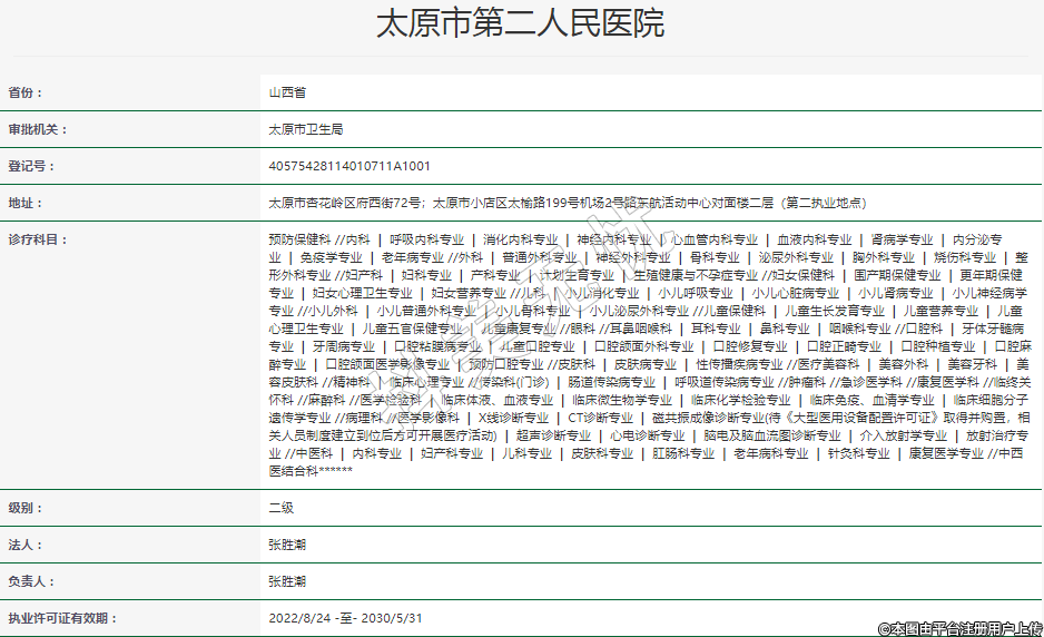 執(zhí)業(yè)許可證有效期:2022/8/24 -至- 2030/5/31