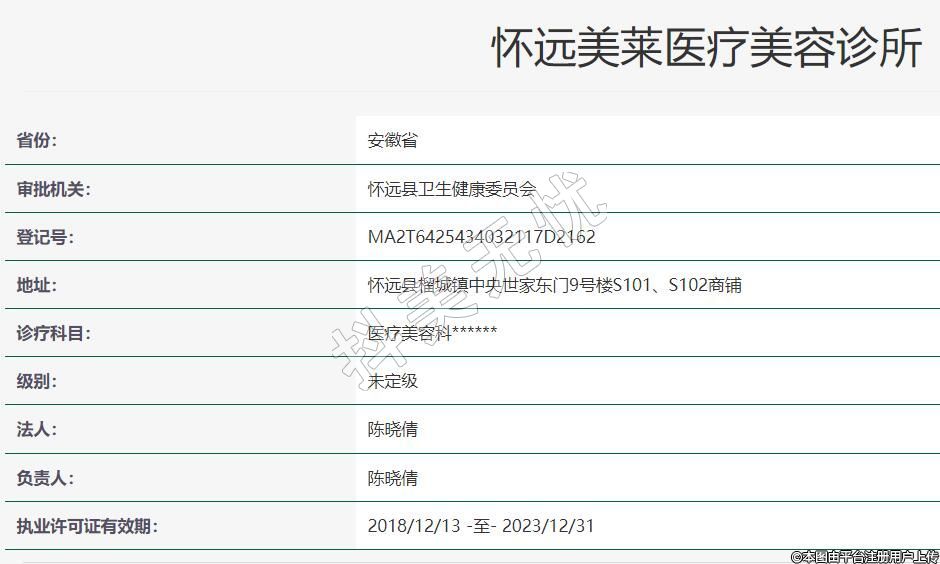 懷遠(yuǎn)美萊醫(yī)療美容2021-06-28成立,地址:懷遠(yuǎn)縣榴城鎮(zhèn)中央世家東門9號樓S101、S102商鋪,診療科目:醫(yī)療美容科******