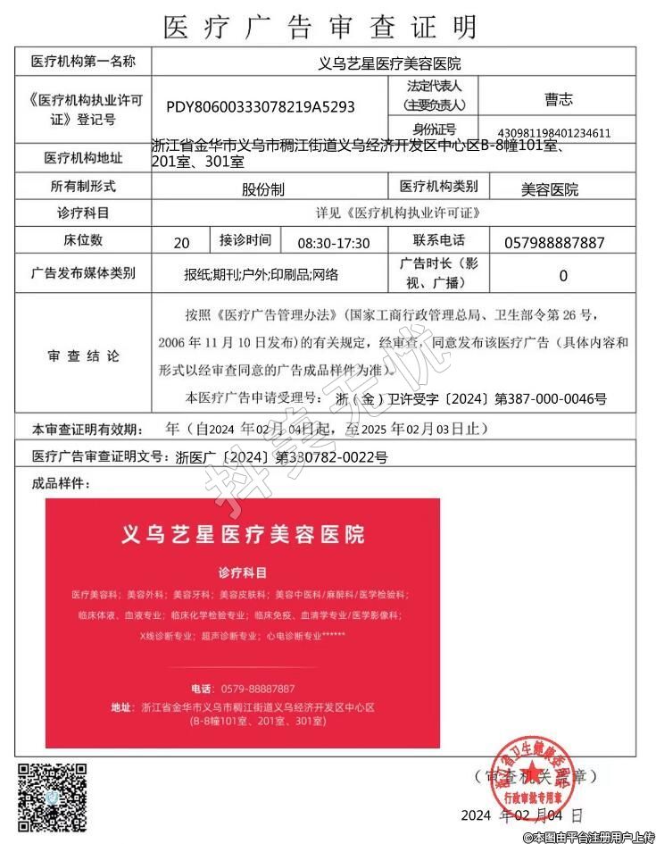 醫(yī)療機構(gòu)名稱:義烏藝星醫(yī)療美容醫(yī)院