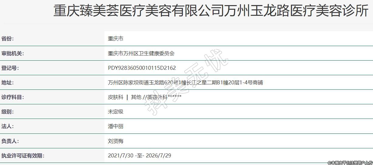 重慶臻美薈醫(yī)療美容有限公司萬州玉龍路醫(yī)療美容診所