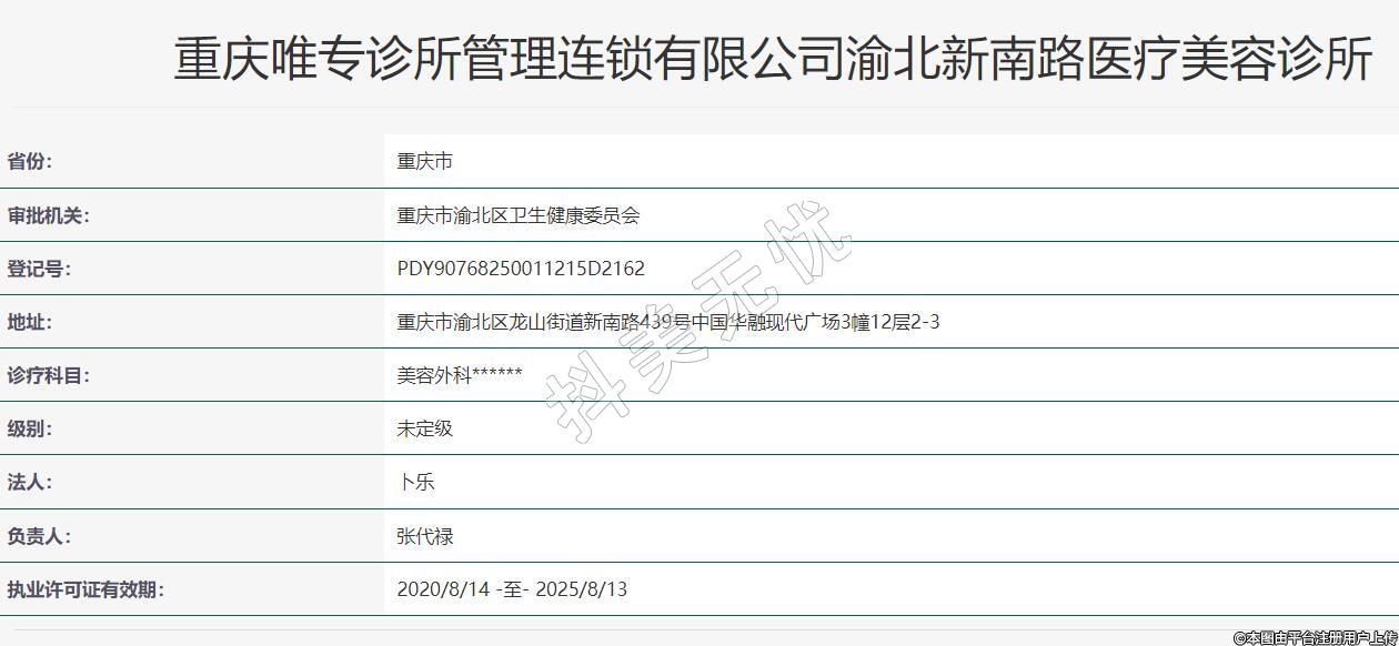 重慶唯專(zhuān)診所管理連鎖有限公司渝北新南路醫(yī)療美容診所
