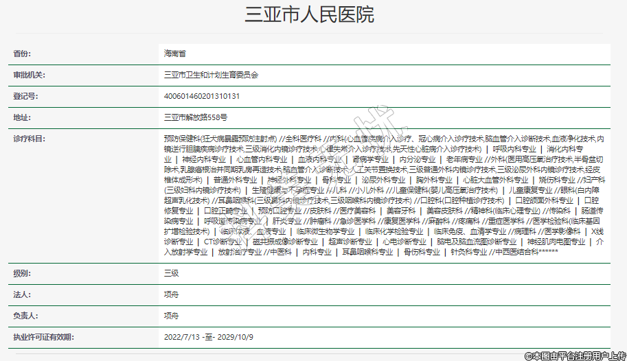 審批機(jī)關(guān):三亞市衛(wèi)生和計劃生育委員會