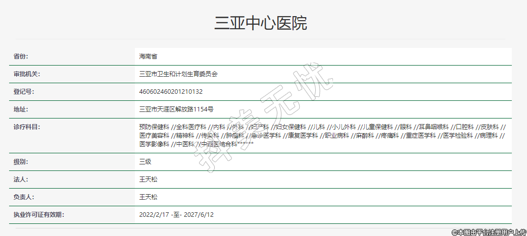 審批機關(guān):三亞市衛(wèi)生和計劃生育委員會