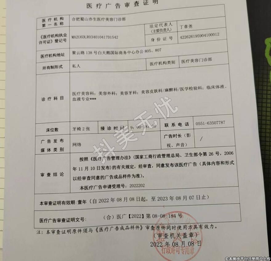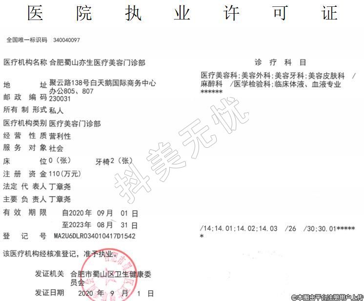 發(fā)證機關:合肥市蜀山區(qū)衛(wèi)生健康委員會