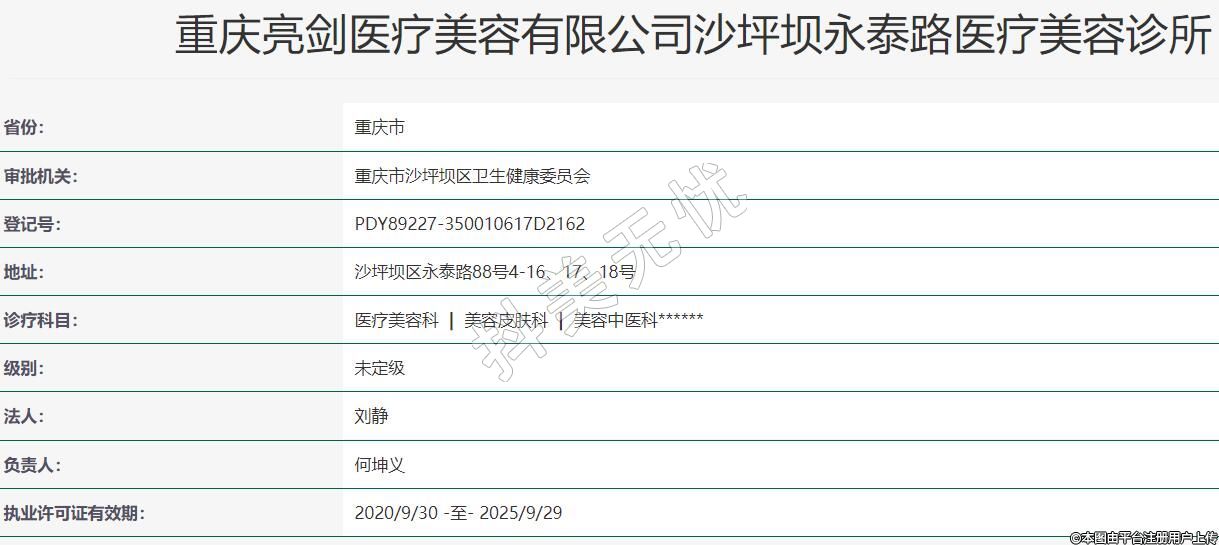 重慶亮劍醫(yī)療美容有限公司沙坪壩永泰路醫(yī)療美容診所