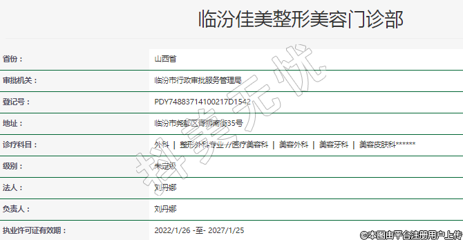 執(zhí)業(yè)許可證有效期:2022/1/26 -至- 2027/1/25