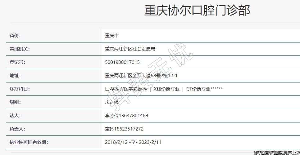 重慶協(xié)爾口腔(金開協(xié)信店)2017-09-06成立,地址:重慶兩江新區(qū)金開大道68號2棟12-1,診療科目:口腔科 //醫(yī)學影像科 | X線診斷專業(yè) | CT診斷專業(yè)******