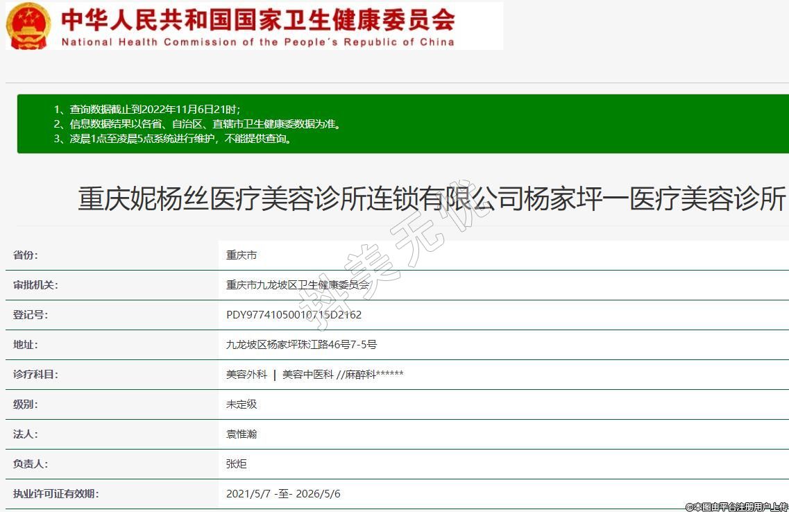重慶妮楊絲醫(yī)療美容診所連鎖有限公司楊家坪一醫(yī)療美容診所