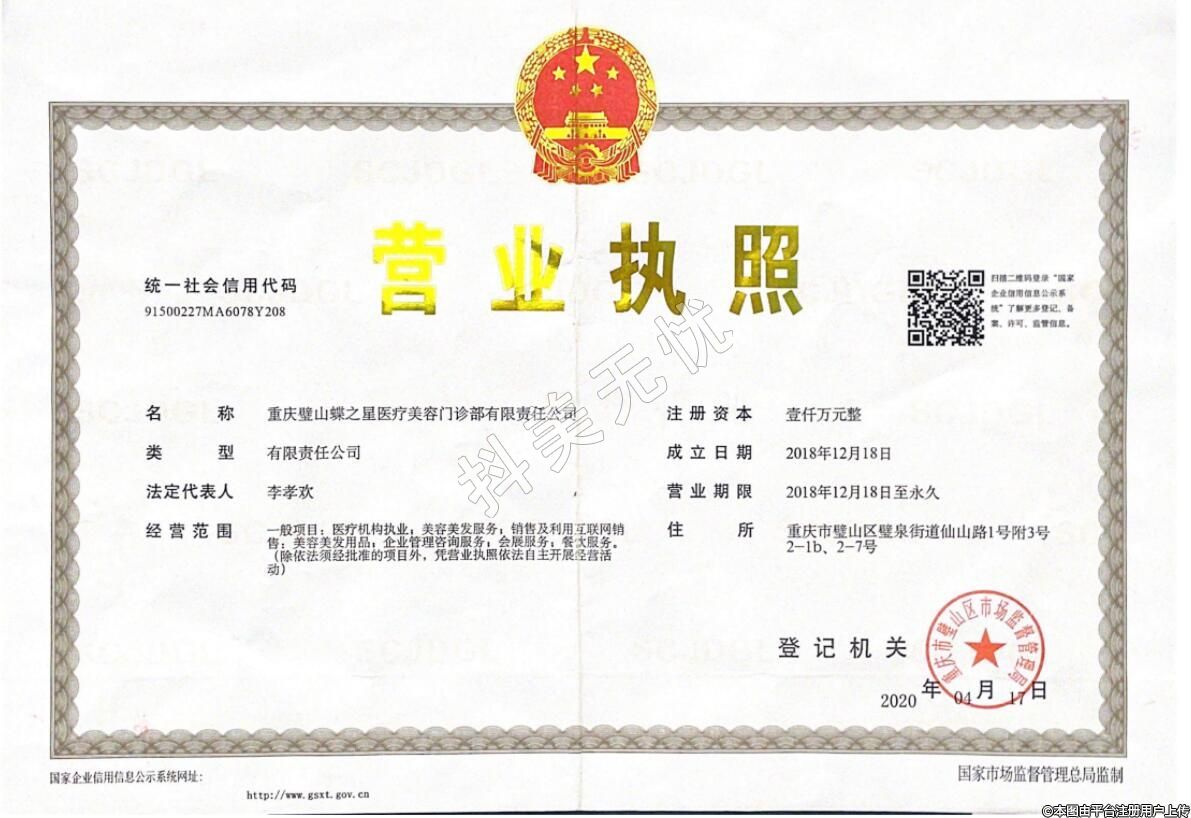 重慶璧山蝶之星醫(yī)療美容門診部有限責(zé)任公司