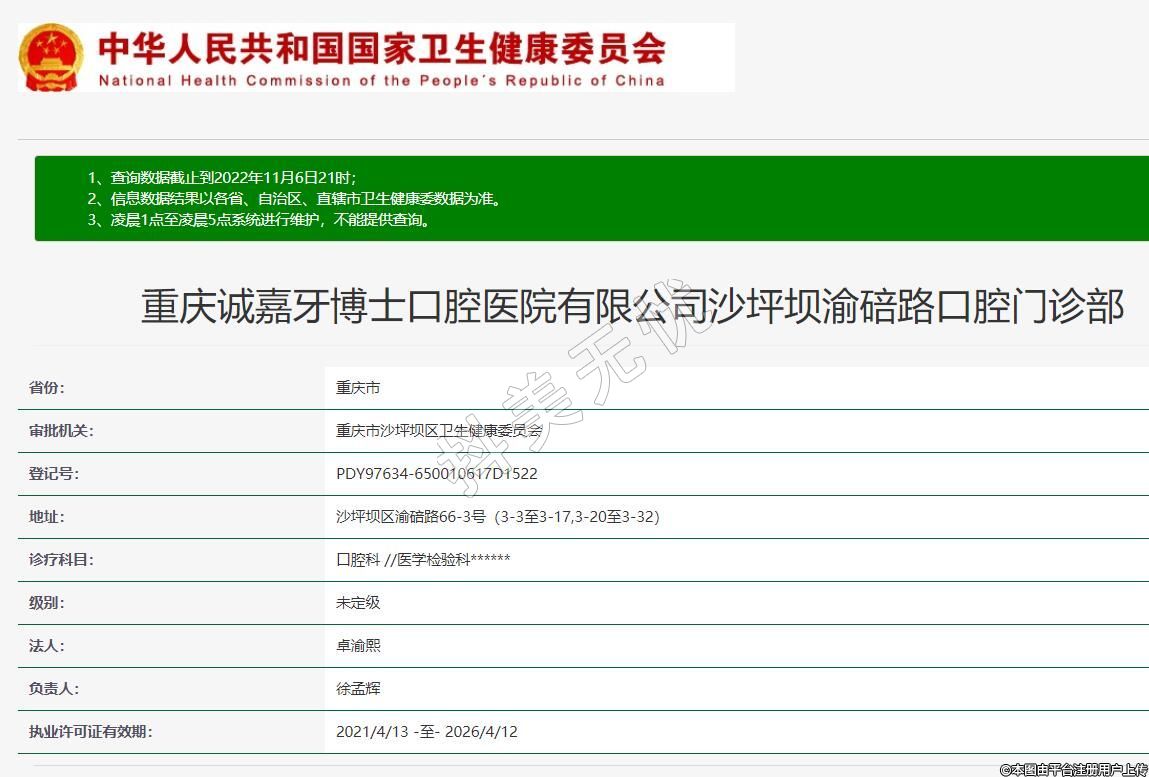 重慶誠(chéng)嘉牙博士口腔醫(yī)院有限公司沙坪壩渝碚路口腔門(mén)診部