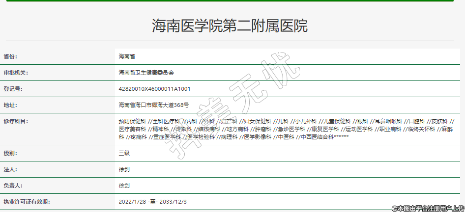 執(zhí)業(yè)許可證有效期:2022/1/28 -至- 2033/12/3
