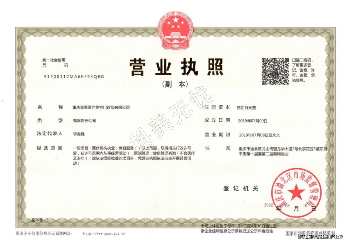 發(fā)證機關(guān):重慶市渝北區(qū)衛(wèi)生健康委員會