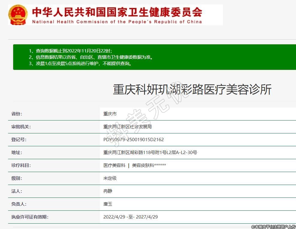 重慶科妍璣醫(yī)療美容2022-02-17成立,地址:重慶兩江新區(qū)湖彩路118號附1號L2層A-L2-30號,診療科目:醫(yī)療美容科 | 美容皮膚科******