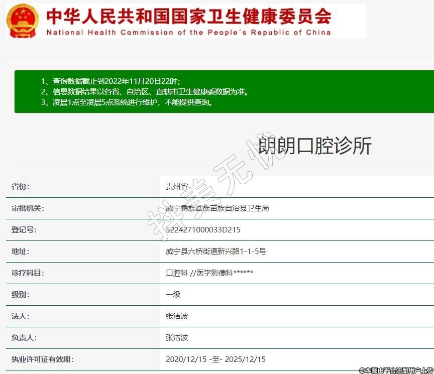 威寧朗朗口腔2020-06-24成立,地址:威寧縣六橋街道新興路1-1-5號,診療科目:口腔科 //醫(yī)學(xué)影像科******