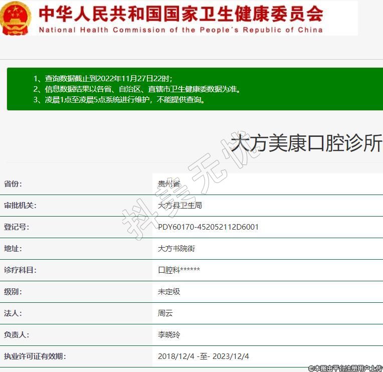 大方美康口腔2019-05-13成立,地址:大方書院街,診療科目:口腔科******