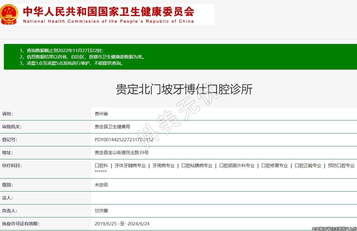貴定北門坡牙博仕口腔2022-03-15成立,地址:貴定縣寶山街道民主路39號,診療科目:口腔科 | 牙體牙髓病專業(yè) | 牙周病專業(yè) | 口腔粘膜病專業(yè) | 口腔頜面外科專業(yè) | 口腔修復(fù)專業(yè) | 口腔正畸專業(yè) | 預(yù)防口腔專業(yè)******
