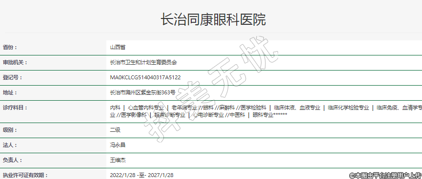 執(zhí)業(yè)許可證有效期:2022/1/28 -至- 2027/1/28