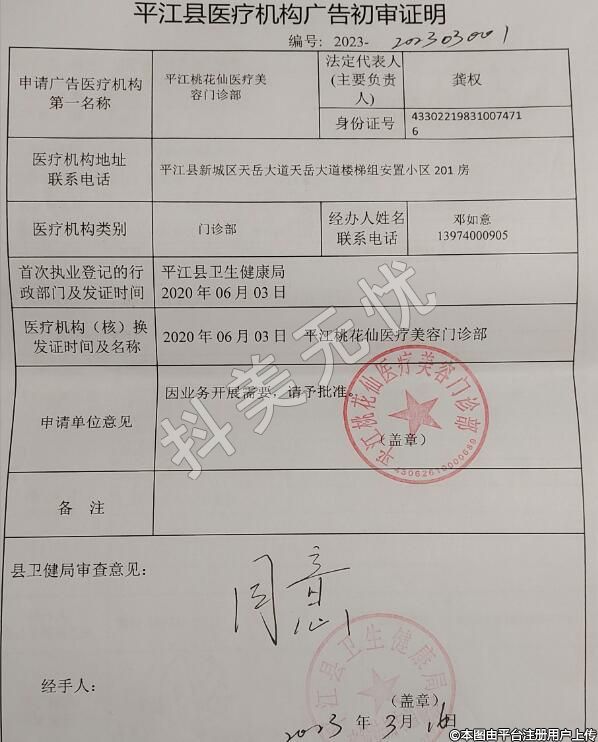 機(jī)構(gòu)名稱:平江桃花仙醫(yī)療美容門診部