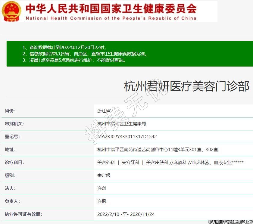 審批機關(guān):杭州市臨平區(qū)衛(wèi)生健康局