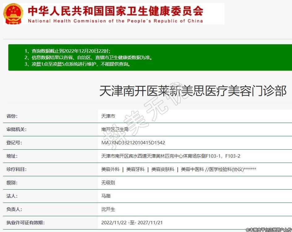 天津醫(yī)萊新美思醫(yī)療美容,診療科目:美容外科 | 美容牙科 | 美容皮膚科 | 美容中醫(yī)科 //醫(yī)學(xué)檢驗科(協(xié)議)******