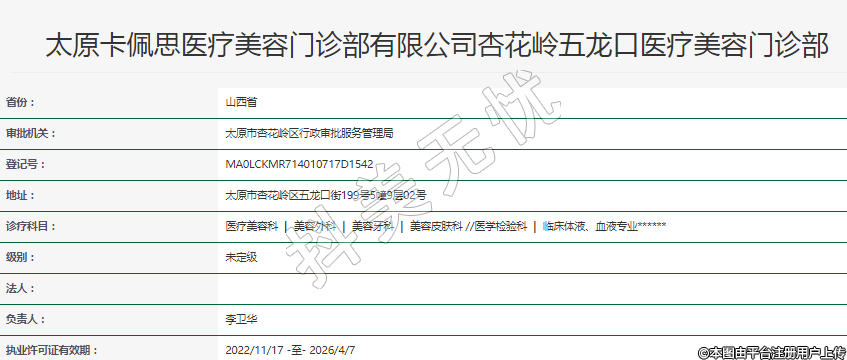 太原卡佩思醫(yī)療美容門(mén)診部有限公司杏花嶺五龍口醫(yī)療美容門(mén)診部