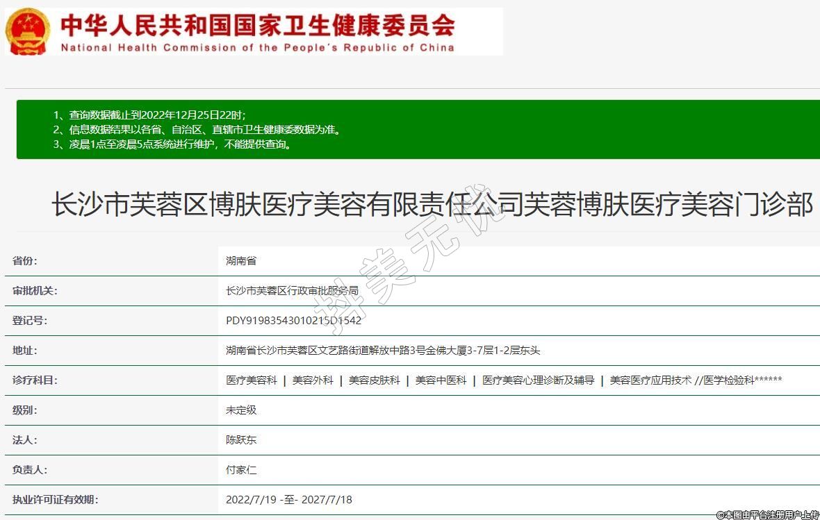 長沙市芙蓉區(qū)博膚醫(yī)療美容有限責(zé)任公司芙蓉博膚醫(yī)療美容門診部