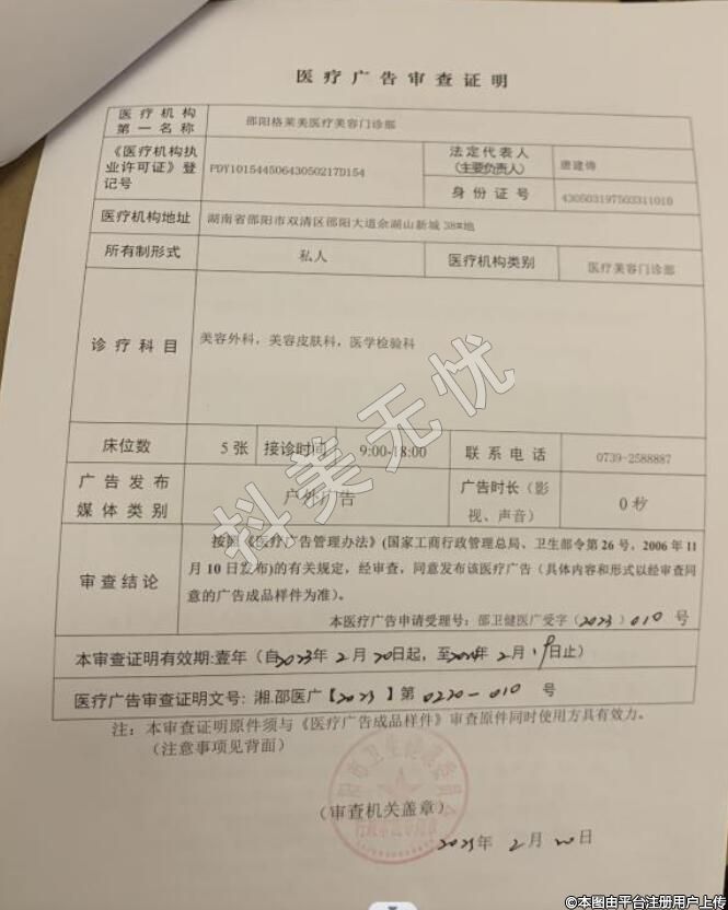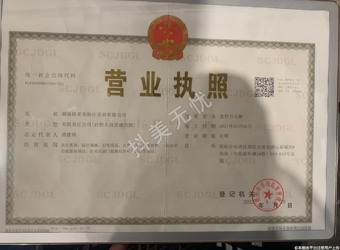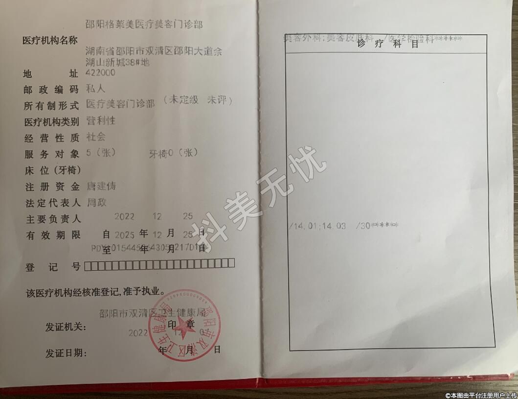 醫(yī)療機(jī)構(gòu)名稱:邵陽格萊美醫(yī)療美容門診部