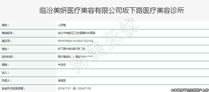 臨汾美妍醫(yī)療美容有限公司坂下路醫(yī)療美容診所