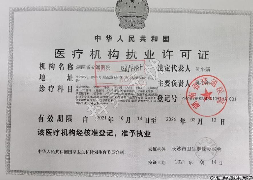 機構(gòu)名稱:湖南省交通醫(yī)院
